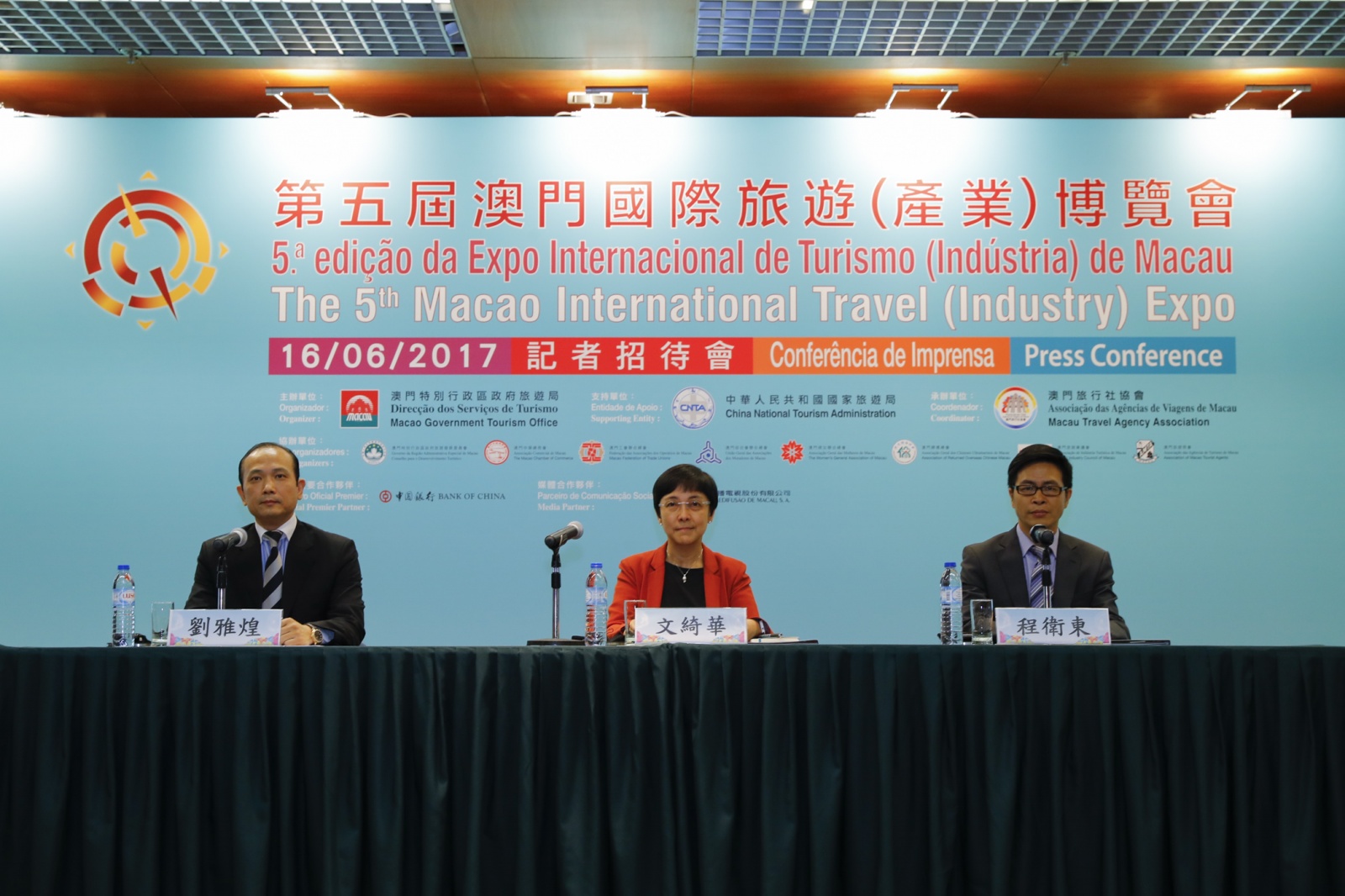 由中華人民共和國國家旅遊局支持、澳門特別行政區政府旅遊局主辦及澳門旅行社協會承辦的第五屆澳門國際旅遊(產業)博覽會(“旅博會")將於7月7至9日假澳門威尼斯人金光會展中心D館舉行。旅遊局聯同澳門旅行社協會於今天(16日)舉行記者招待會介紹今屆旅博會內容。