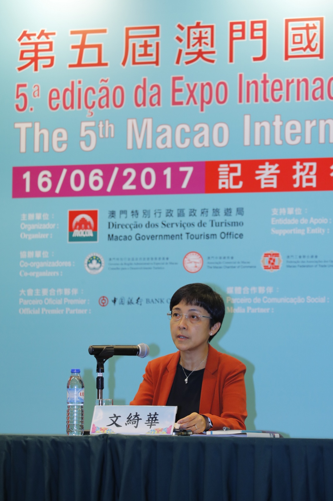 旅遊局局長文綺華、副局長程衛東及澳門旅行社協會會長劉雅煌等出席記者招待會。文綺華致辭時提到,特區政府積極發揮澳門的獨特優勢,重點做好“一帶一路”工作的頂層設計,與澳門“一中心,一平台”建設和推動粵港澳大灣區建設等工作系統地結合起來,融入國家發展。旅博會把握當前的發展契機,運用好澳門的獨特優勢,加強交流合作橋樑的作用,適切地配合特區政府的工作。她相信在國家旅遊局的大力支持及所有參與單位的協作下,能夠持續強化旅博會連繫內地以及世界各地旅遊業和相關產業的紐帶作用,期望締造更多旅遊合作商機,亦為不斷提升澳門在國家經濟發展和對外開放中的地位和功能作出貢獻。