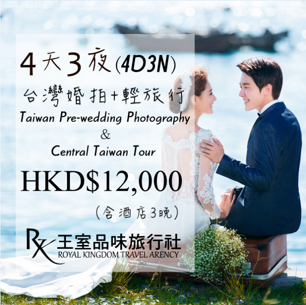 台灣婚拍4天3夜原價HKD16000,展會現場優惠HKD12000等優惠路線。