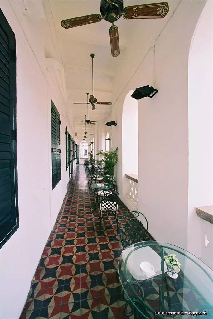 博物館外還有一個小陽台,同樣以白色和墨綠色為主色調,頂上的黑色吊扇與數張雕花鏤空設計的桌椅平添了不少復古情調。從這裏,可以俯瞰整個議事亭前地。微風輕拂,看樓下人來人往,心中卻是一片祥和安寧。我想,這便是在煩囂的鬧市中仁慈堂大樓獨有的魅力吧。
