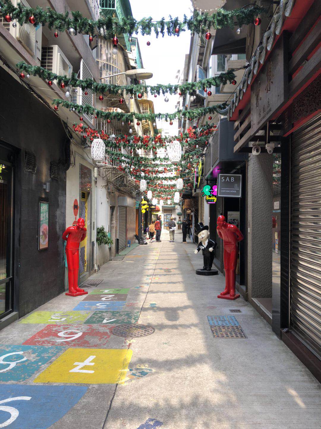 在俊秀圍,你可以與有趣的裝置藝術合影,買買稀奇古怪的小玩意,還能品嘗地道土生葡人的美食,甚至感受截然不同的時代交錯街景。