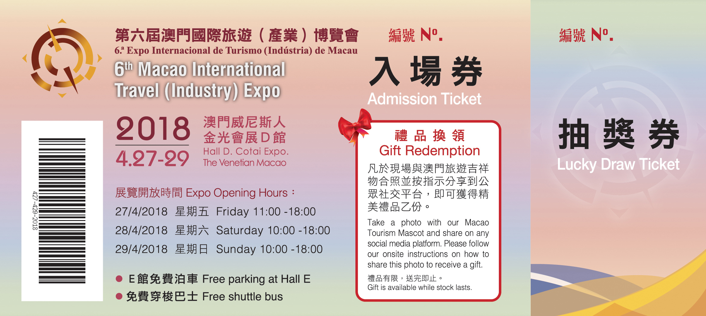 第六屆澳門國際旅遊(產業)博覽會將於4月27日至29日開放參觀。門票於澳門威尼斯人金光會展中心D館現場派發,公眾可憑票免費入場。
