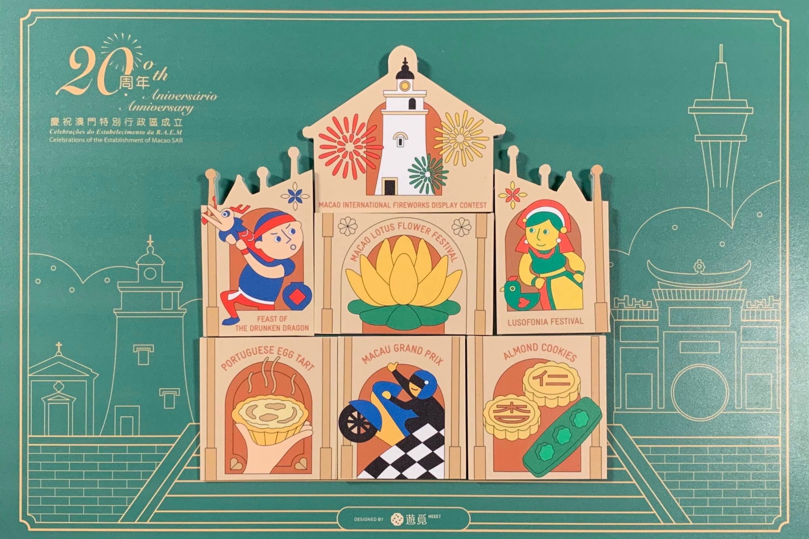 旅遊局與本地文創公司合作推出特色磁貼紀念品,設計師以“系列性”作為本次紀念品設計基礎,將澳門的多元旅遊文化,包括節日盛事,文化遺產和特色美食等題材融入每月的紀念品當中,旅客集齊七個月抽到的紀念品合拼起來將可組合成澳門著名地標大三巴,鼓勵旅客再次到訪澳門,感受不同月份澳門帶來的魅力。同期由五月起,銷售版磁貼紀念品同步在指定地點的禮品售賣機上限量發售,錯過了抽獎的旅客也有機會收藏慶祝澳門特別行政區成立二十周年系列紀念品。
