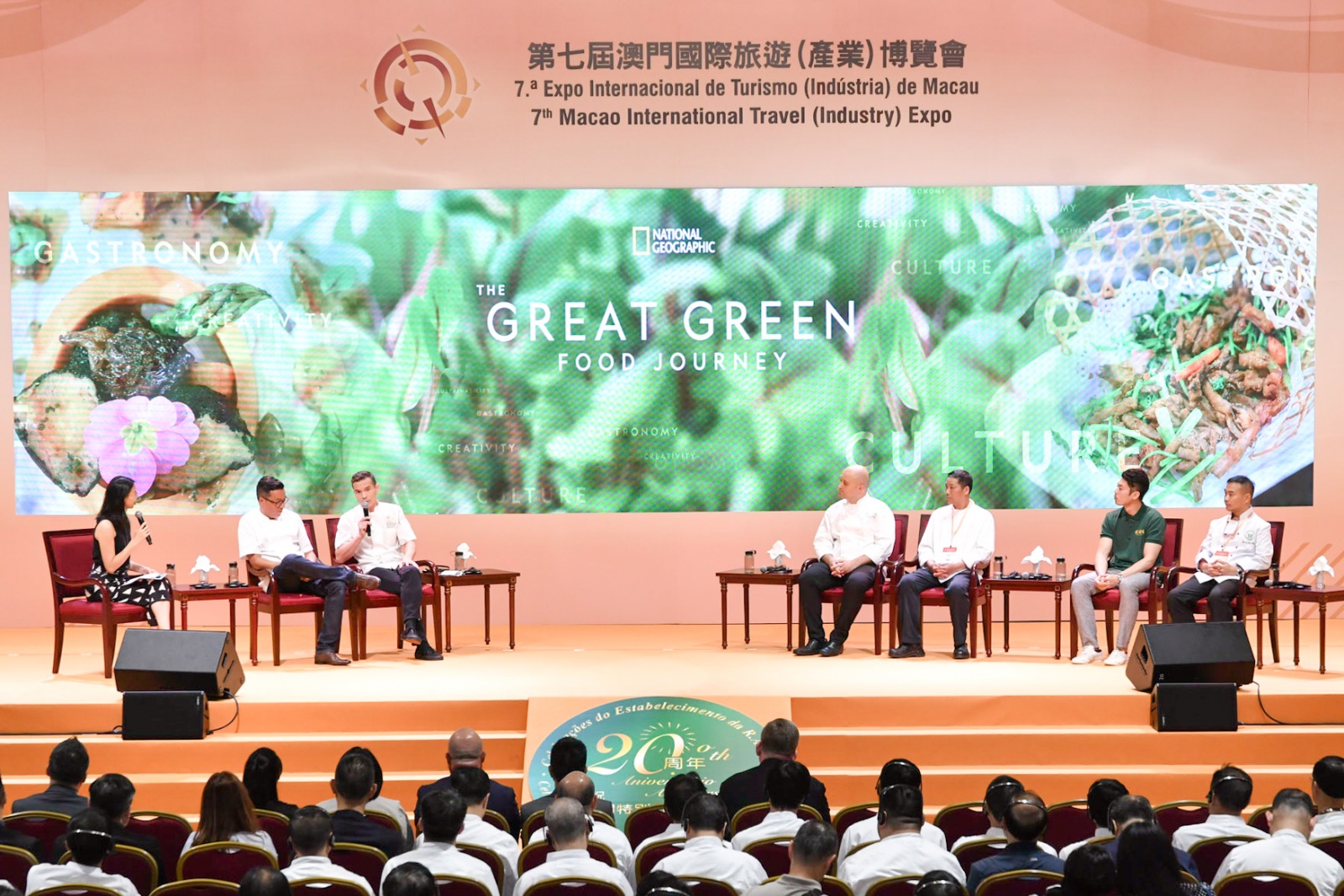 演講嘉賓在會上分享各自的環保做法以及對澳門美食可持續發展所抱的願景,同時展望可持續美食烹調在旅遊業未來發展中可擔當的角色。講者除了分享如何運用創意設計出色的菜式及擺盤,並介紹所屬餐廳已採用綠色烹調等的環保做法,利用屋頂花園及養耕共生系統自家種植食材,加以善用材料以盡量減少廚餘。旅遊局與國家地理的合作項目亦透過短片及其他內容,介紹獲邀廚師及他們的理念。