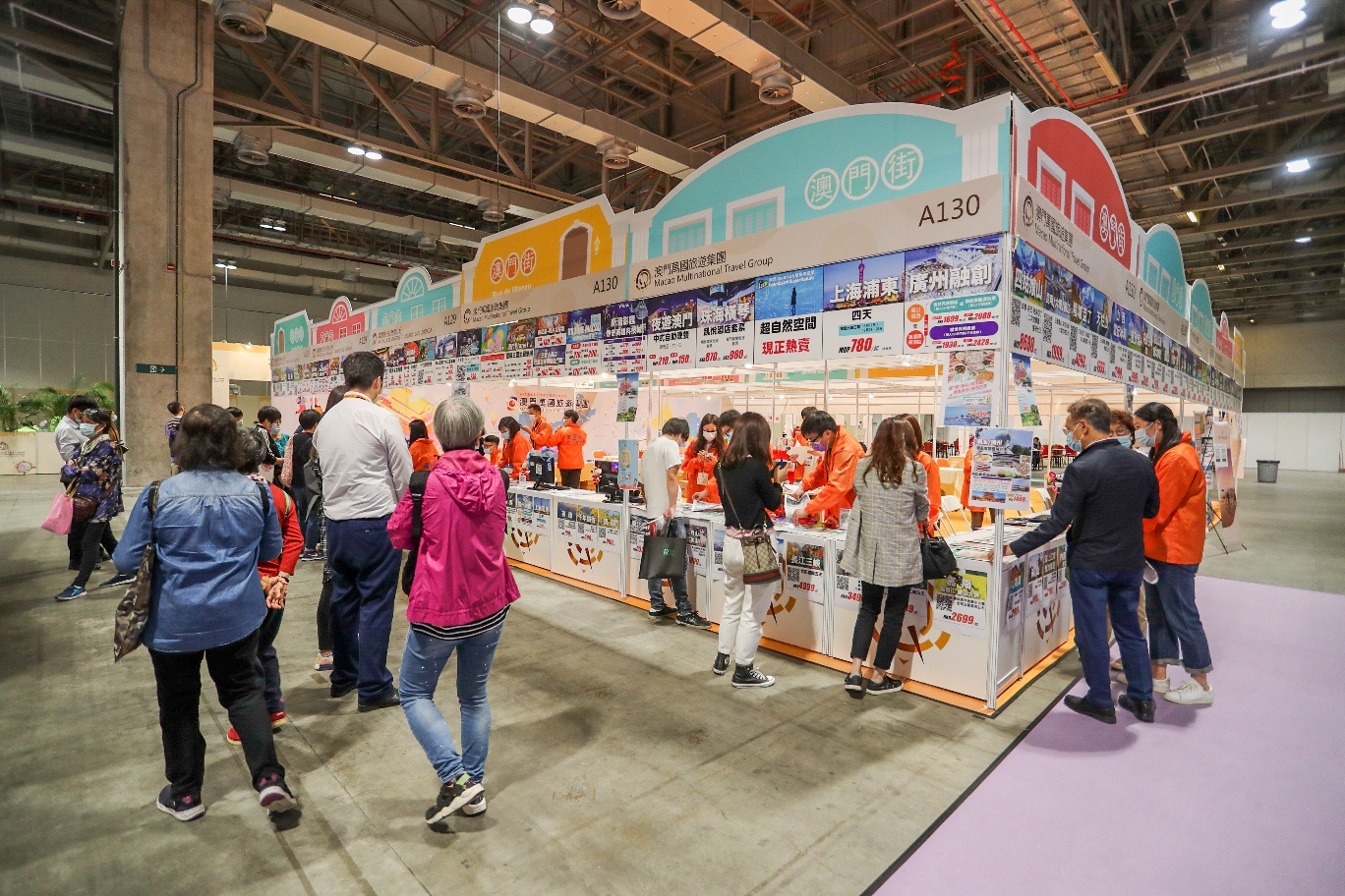 為加強澳門旅遊業界提振旅遊經濟信心,今屆旅博會豁免澳門展商參展費,超過130家澳門展商參與,較上屆增加1.2倍;“澳門街”主要銷售旅遊套票、酒店住宿、自助餐劵、餐飲代用劵、特色產品和手信類產品,展位超過200個,較上屆增加1.6倍。“大灣區旅遊街”展區由九個粵港澳大灣區城市攜同約70多家旅遊業界參展商為市民帶來當地特色旅遊手信,主要銷售其當地產品和特色手信,大多以其品牌宣傳形式為主。